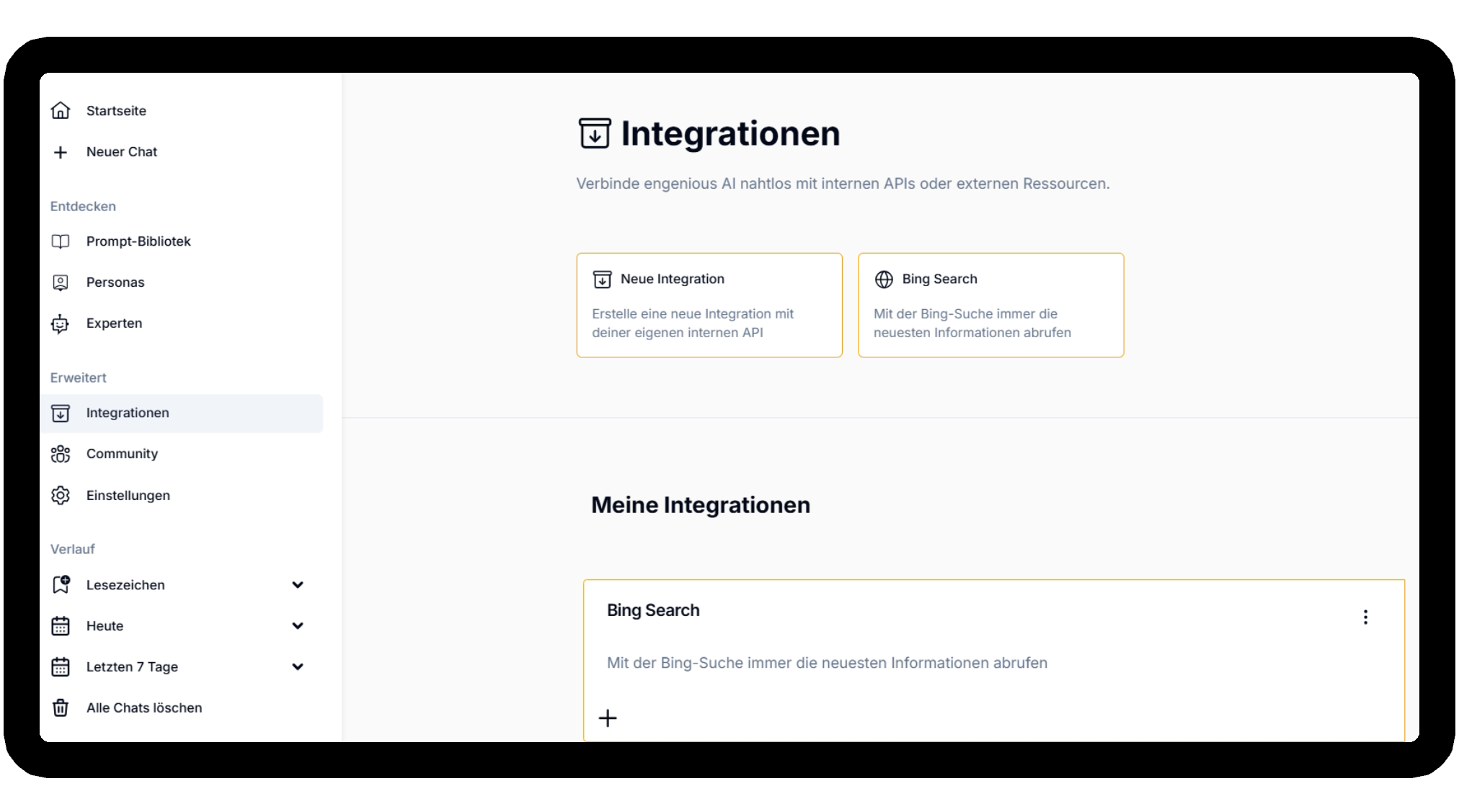- Nutze engenious AI um auf Deine eigenen API-Schnittstellen zugreifen zu können